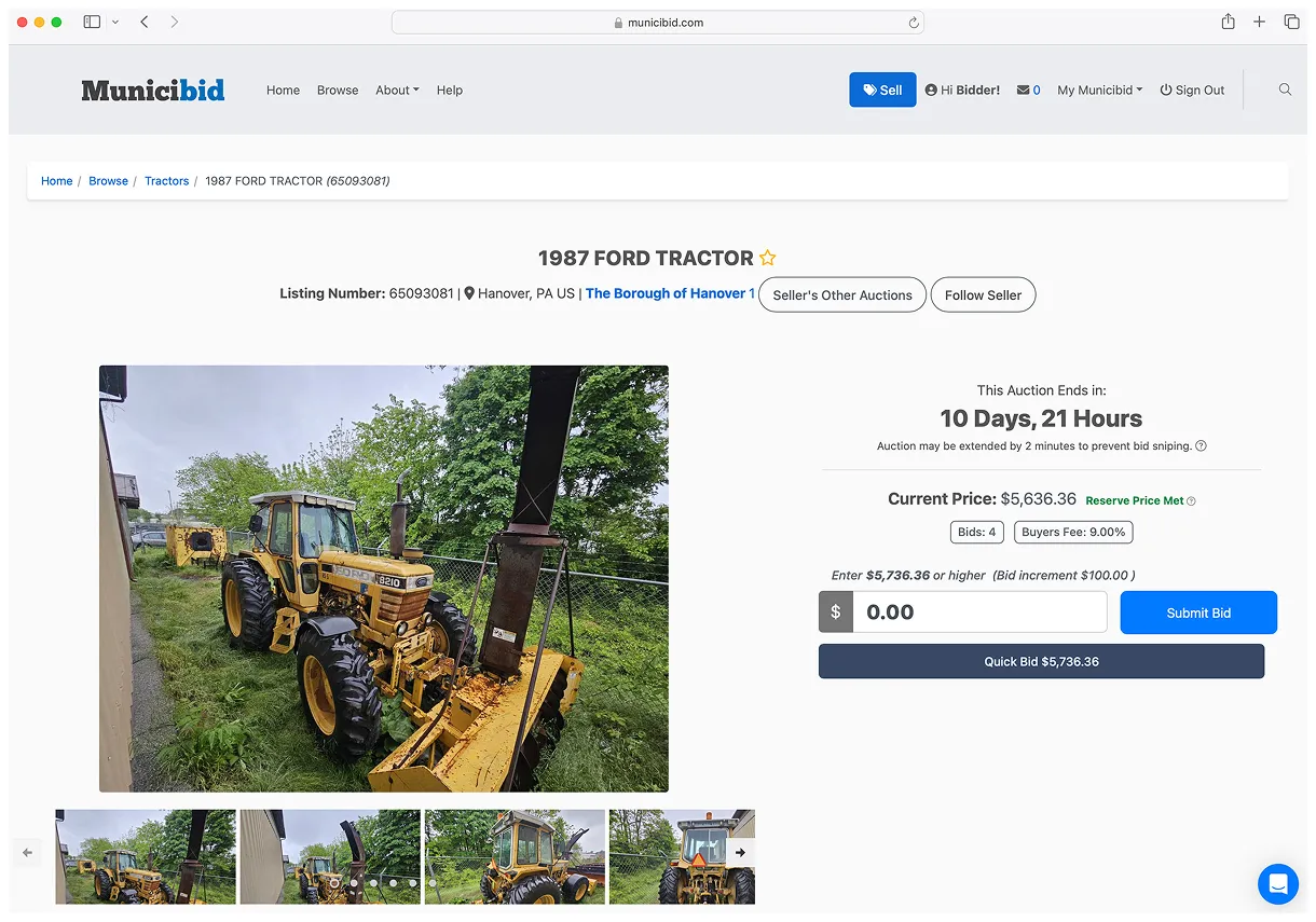 Easily and conveniently access incredible deals on vehicles, heavy equipment, and just about anything else that over 7,000 state and local governments and schools are selling on Municibid.